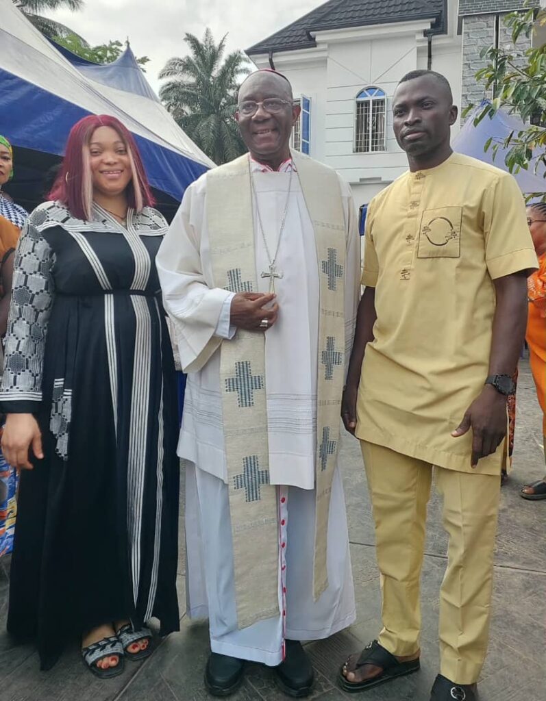 Known and widely respected for his simplicity, humility and time-consciousness, Bishop Echema arrived Engr. Alozie’s residence at about 9:30am in the company of Rev. Father Peter Olumba, Parish Priest of Saint Francis Catholic Church Umuapu/Umuakpor and Rev. Father Cyril Okafor.