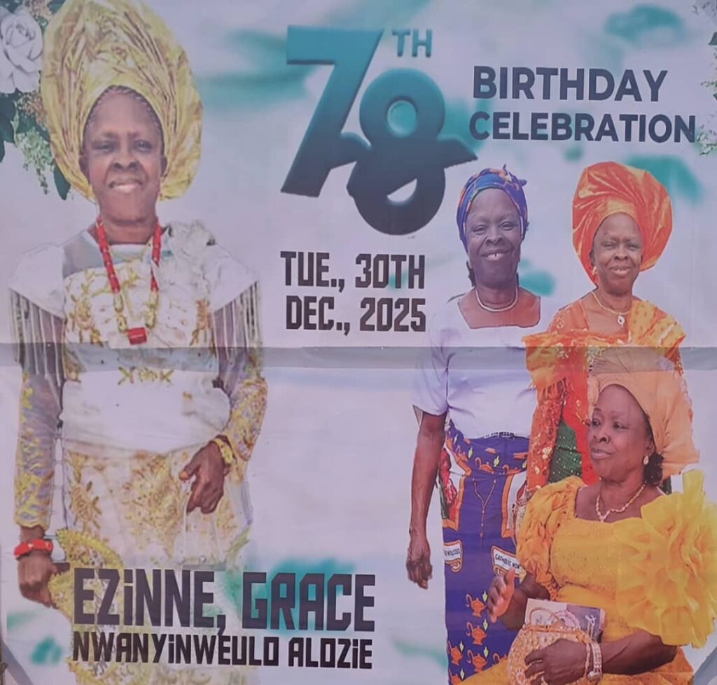 Tuesday, December 30, 2025 was a significant day for the entire Alozie Family of Umuibe, Umuapu, Apu-Ukwu Autonomous Community, Isiala Ngwa South LGA, as they gathered in their numbers to honour their mother, grandmother, inlaw, sister and aunt, Ezinne Grace Nwanyinweulo Alozie on her 78th birthday anniversary.