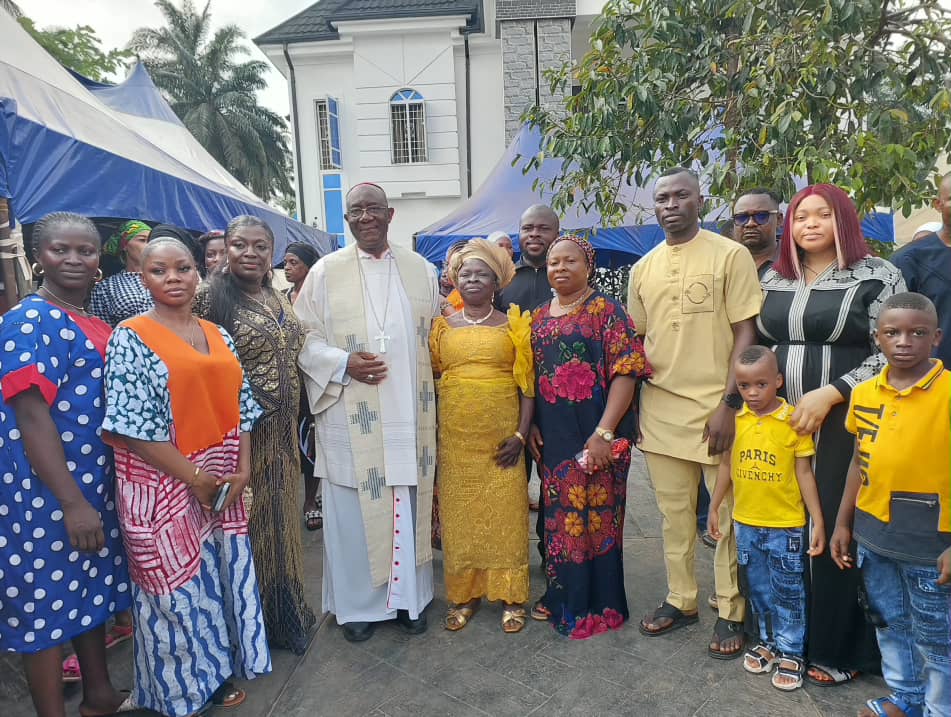 While praying for the Family, he commended the efforts of Engr. ThankGod Alozie, not only for erecting such a magnificent building at home, but for inviting the Clergy, family, friends and well-wishers to share his joy and glorify God for His blessings. The Bishop further commended Engr. Alozie and his siblings for honouring their Matriarch, Ezinne Grace Nwanyineulo Alozie and prayed that God would continue to shower her with His blessings for good health, long life and protection.